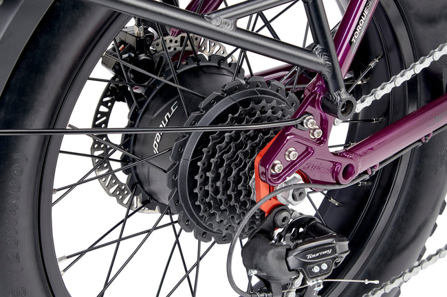 The JetCurrent Pro comes with our updated torque sensor with bi-directional High Definition cadence sensing. It features a Larger M14 dropout to accommodate the larger motor axle and a refreshed red anodized finish.